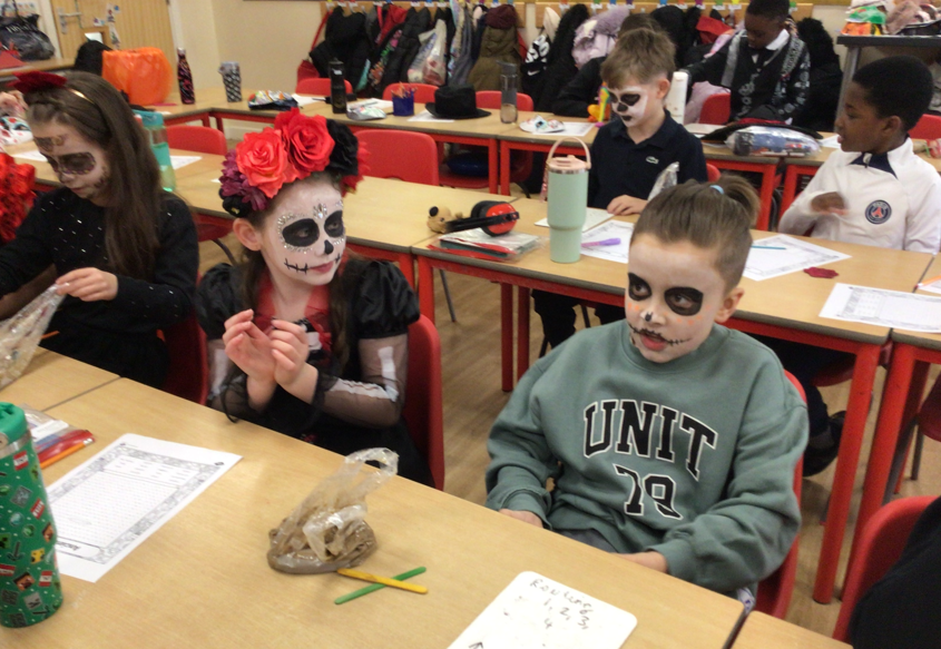 In our History lessons at primary school, we linked this celebration to our learning about the Ancient Maya. The children loved dressing up as Maya kings, queens, and farmers, which helped them imagine what life was like long ago. They took part in fun activities such as making bright masks, creating their own instruments and recalling key facts about Maya gods, temples, and daily life. By immersing themselves in these hands-on experiences, the children were able to confidently share their knowledge and understanding of the Ancient Maya civilisation while celebrating the rich traditions that are still remembered today.